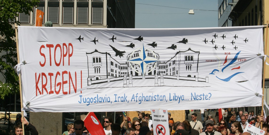 Norges holdning har vært at all krigføring skal utføres innenfor FNs rammer og være basert på FNs sikkerhetsråds resolusjoner. Etter at NATO endret strategi til «out-of-area», dvs. å igangsette militære operasjoner utenfor medlemslandenes territorium, har Norge blitt et militært støttehjul for USAs krigsmaskineri og deltatt i flere ulovlige kriger.