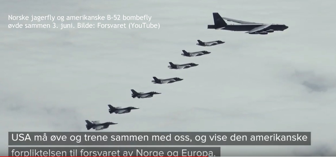 3. juni trente norske F-35 og F-16 jagerfly med amerikanske B-52 Stratofortress i internasjonalt luftrom nord for Finnmark. B-52 har helt fra 1950-tallet vært ryggraden i det amerikanske flyvåpenets Strategic Air Command (SAC), og er fremdeles det viktigste bombeflyet i det amerikanske flyvåpenets Air Combat Command. Det ble mye brukt under Vietnamkrigen og også i Gulfkrigen i 1991. Flyet er bygd for å bære minst 20 atommissiler.