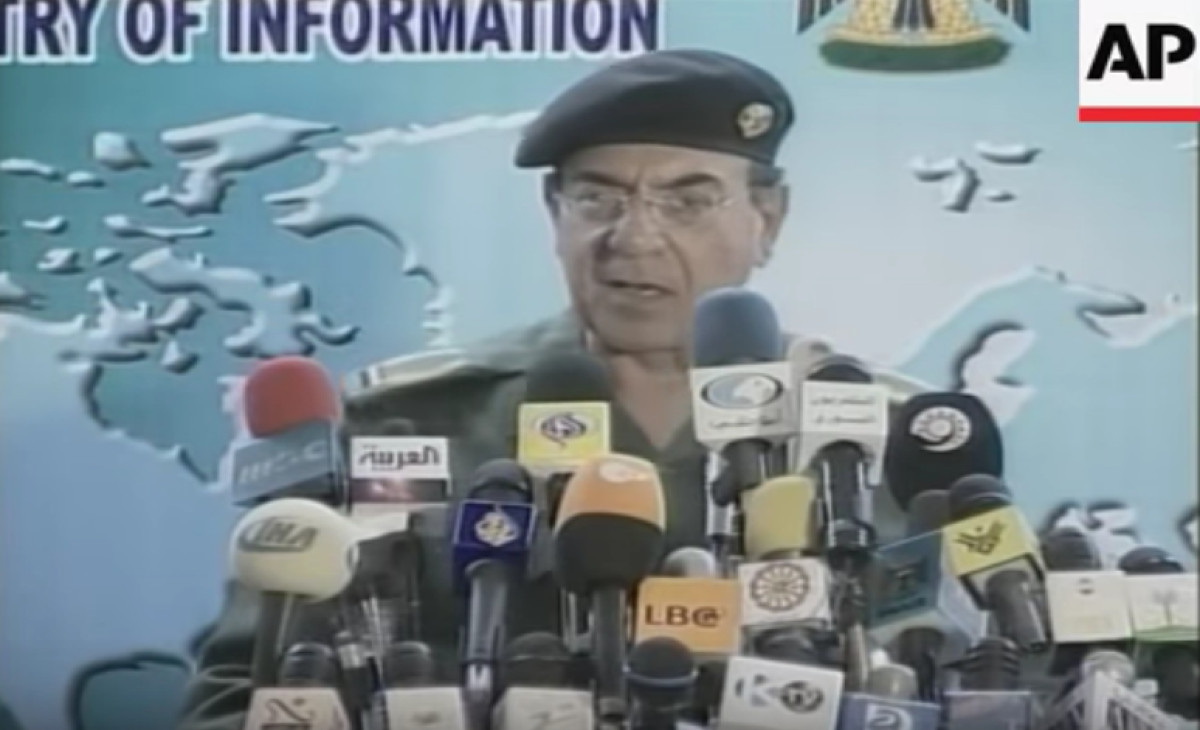 Iraks informasjonsminister Mohammed Saeed al-Sahhaf (bildet) ble verdensberømt under invasjonen av Irak i 2003. Som talsmann for Saddam Hussein holdt han daglige pressekonferanser der hovedbudskapet var at Irak hadde full militær kontroll. At invasjonsstyrkene raskt slo ut de irakiske forsvarsverkene nektet han å innrømme. Selv da amerikanske stridsvogner kontrollerte store deler av Bagdad og befant seg bare noen hundre meter unna, serverte han skråsikre uttalelser om en snarlig irakisk seier.