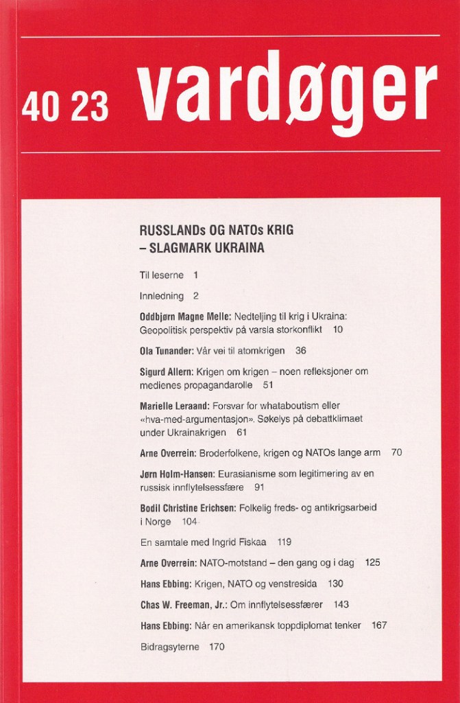 Spartakus.no har fått tillatelse til å trykke innledningen i tidsskriftet Vardøgers nye utgivelse (40 2023), som har tittelen «Russlands og NATOs krig – slagmark Ukraina». Her blir innholdet i denne særs viktige utgivelsen presentert på en god måte.