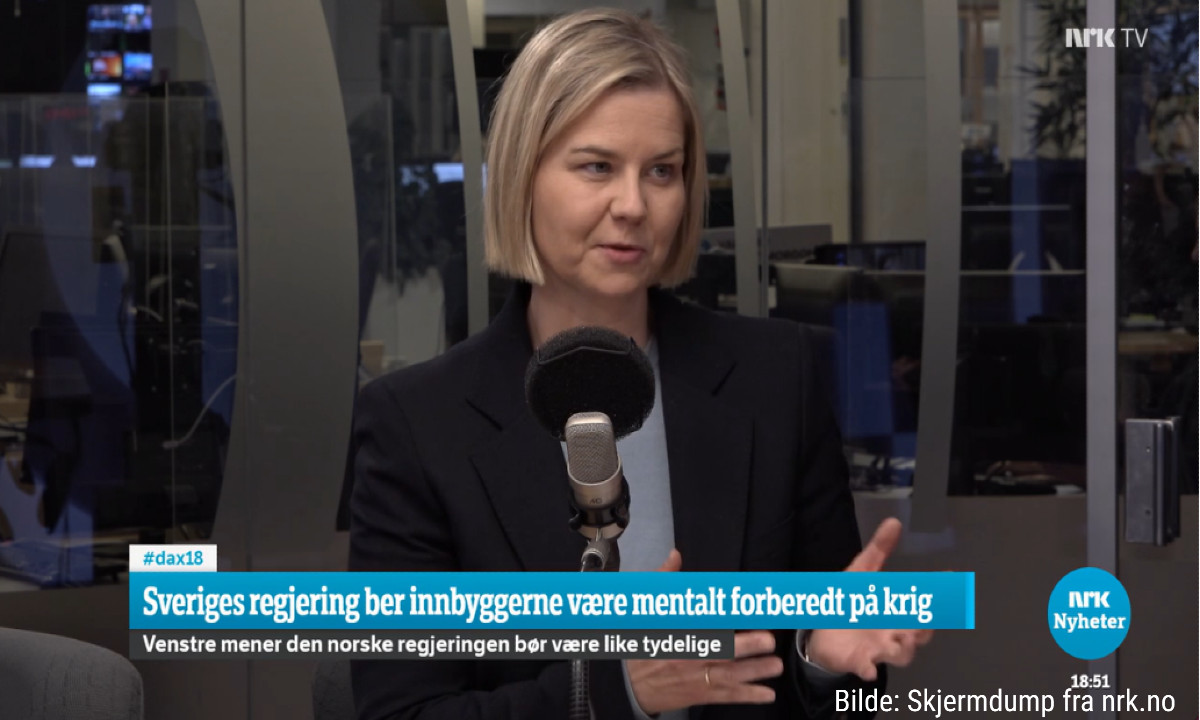 Onsdag denne uken hadde Venstres leder Guri Melby fått plass i Dagsnytt 18-studioet. Melby er andre nestleder i Utenriks- og forsvarskomiteen og har i lang tid markert seg som en hauk. Denne gangen gjentok hun budskapet som flere har kommet med i det siste: Vi må være mentalt forberedt på krig, Russland er en direkte trussel mot Norge.