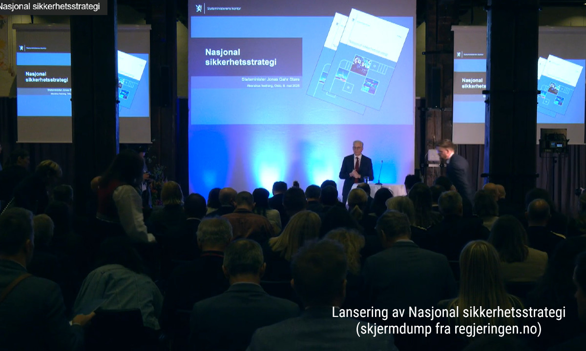 På selve frigjøringsdagen lanserte regjeringen og Jonas Gahr Støre en Nasjonal sikkerhetsstrategi. Dagen var ikke tilfeldig valgt. Støres presentasjon åpnet med en direkte henvisning til 8. mai 1945, en gledens dag over at krigen var slutt. Nå står vi imidlertid «i den mest alvorlige og usikre tiden Norge har stått i siden den annen verdenskrig», ifølge Støre. Han pekte på dirkete trusler mot norsk sikkerhet: Russland, Kina og til og med «vår nærmeste allierte USA», som nå opptrer på en måte som skaper usikkerhet.