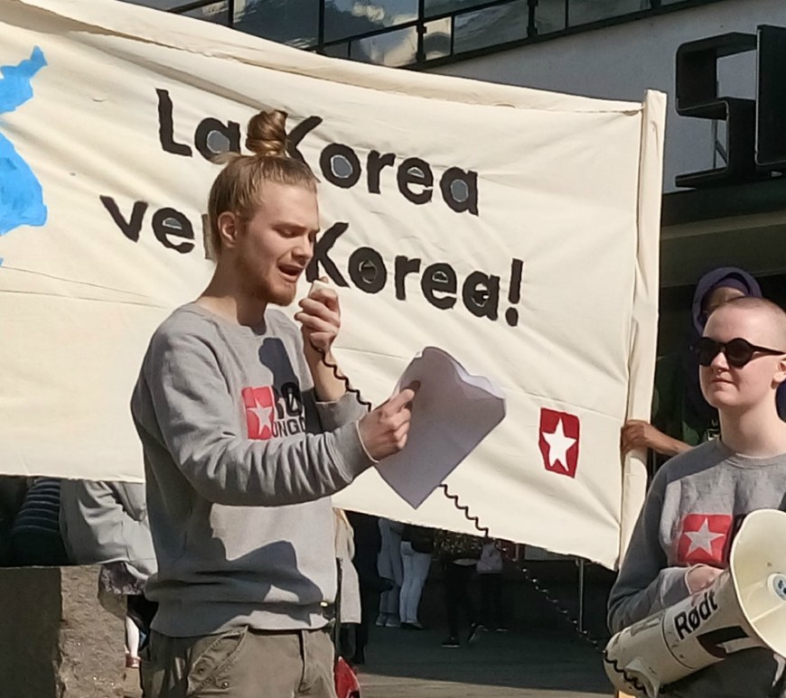 Rød Ungdom tok initiativ til markering mot USA-intervensjon i Korea. Flere organisasjoner deltok på Torgallmenningen i dag. Her er Vegard Holtås fra Bergen Rød Ungdom sin appell. Fortsett å lese La Korea vere Korea!