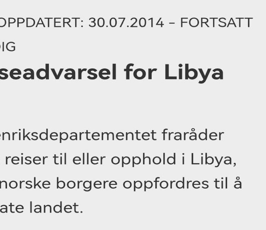 De hadde tenkt å besøke Libya i sommer, men det viser seg at krigen som statsminister Jens Stoltenberg og hele Stortinget så aktivt bidro til i 2011, fremdeles ikke gjør det tilrådelig å besøke landet. Fortsett å lese Reiseinformasjon Libya