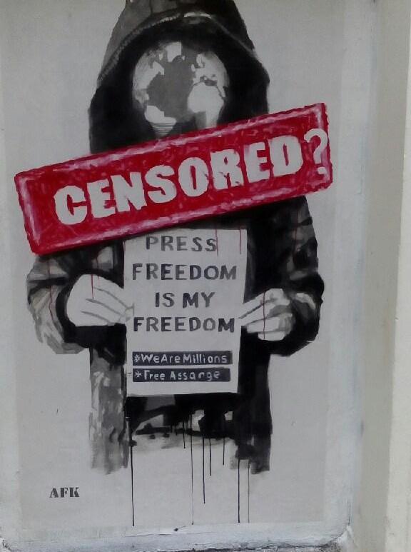 I natt hang gatekunstneren AFK opp et nytt bilde, som en kommentar til at Media City Bergen fjernet utstillingen til støtte for Julian Assange. Kunstsensuren vekker nå oppsikt og fordømmelse internasjonalt. Fortsett å lese Kunstsensur vekker internasjonal oppsikt